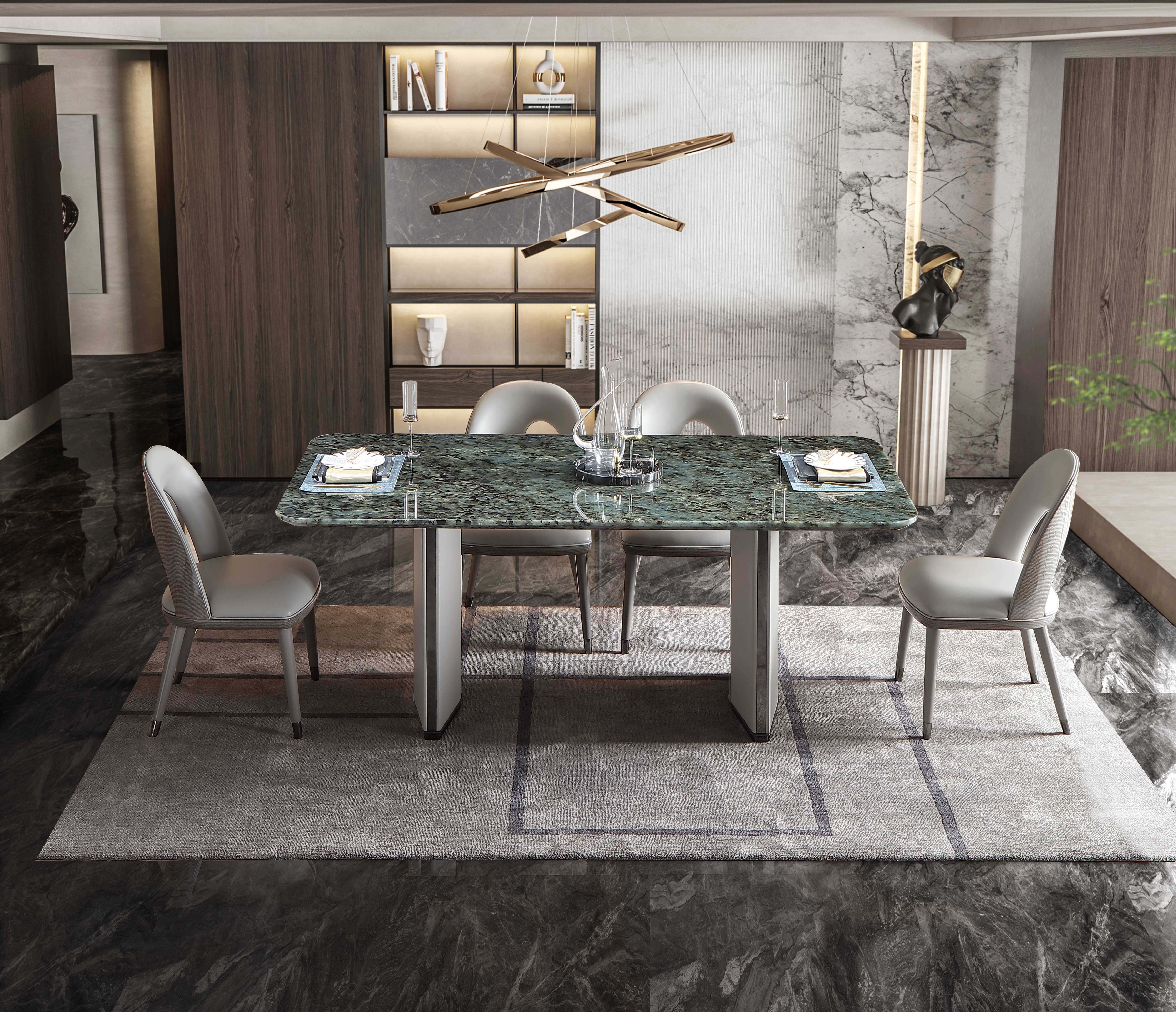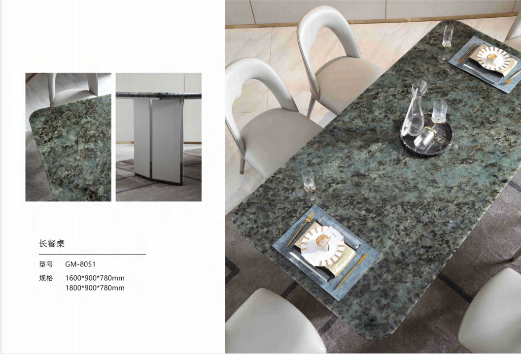 格慕翡翠蓝大理石台面长餐桌椅组合
