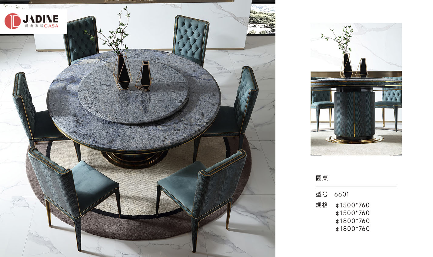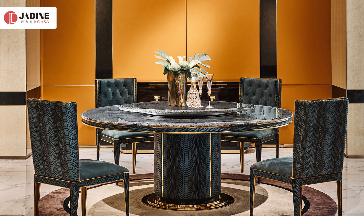 格慕高端蛇皮纹轻奢大理石餐桌椅